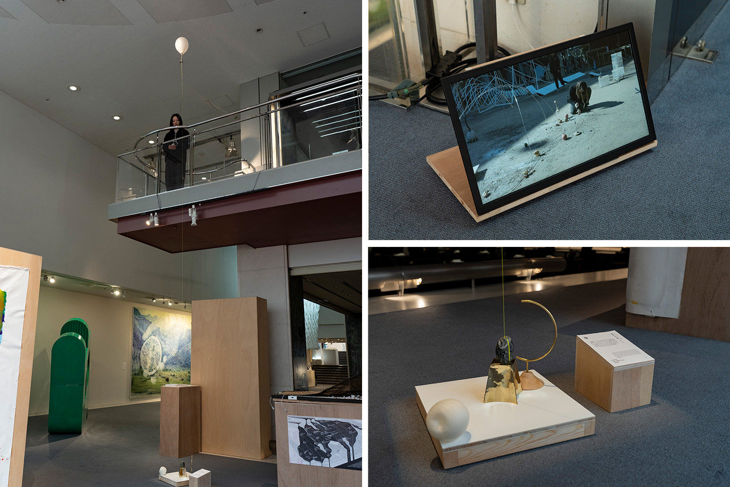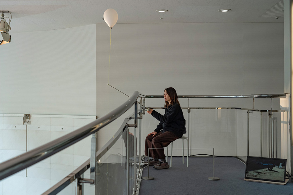 この場所をキャッチする。道具は身体をどこまで拡張し、また身体に戻ってこれられるだろうか?釣りは浮と錘が感覚装置となり、釣り竿がそれを身体へ伝える。錘が重力を捉え、浮が大気圏の外へ向かっていく。釣りの時間ではその間で起こる波を感じている。本作では石でできた錘、持ち手の釣り竿を持ち続け錘と浮から伝わるものを感覚する時間をつくるパフォーマンスをおこなう。魚はいないが何かを待つ。