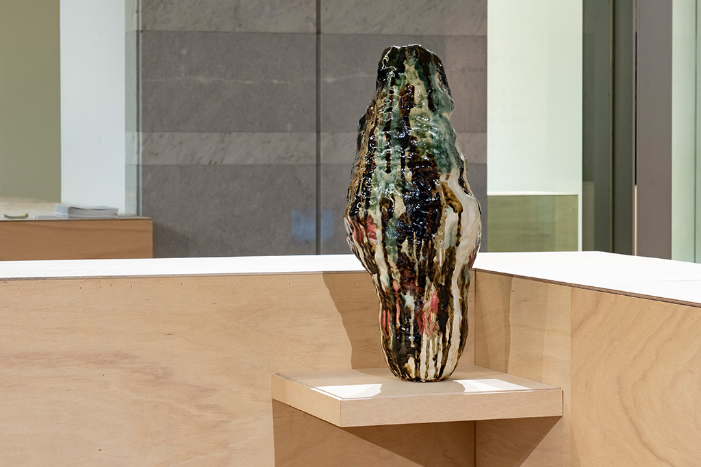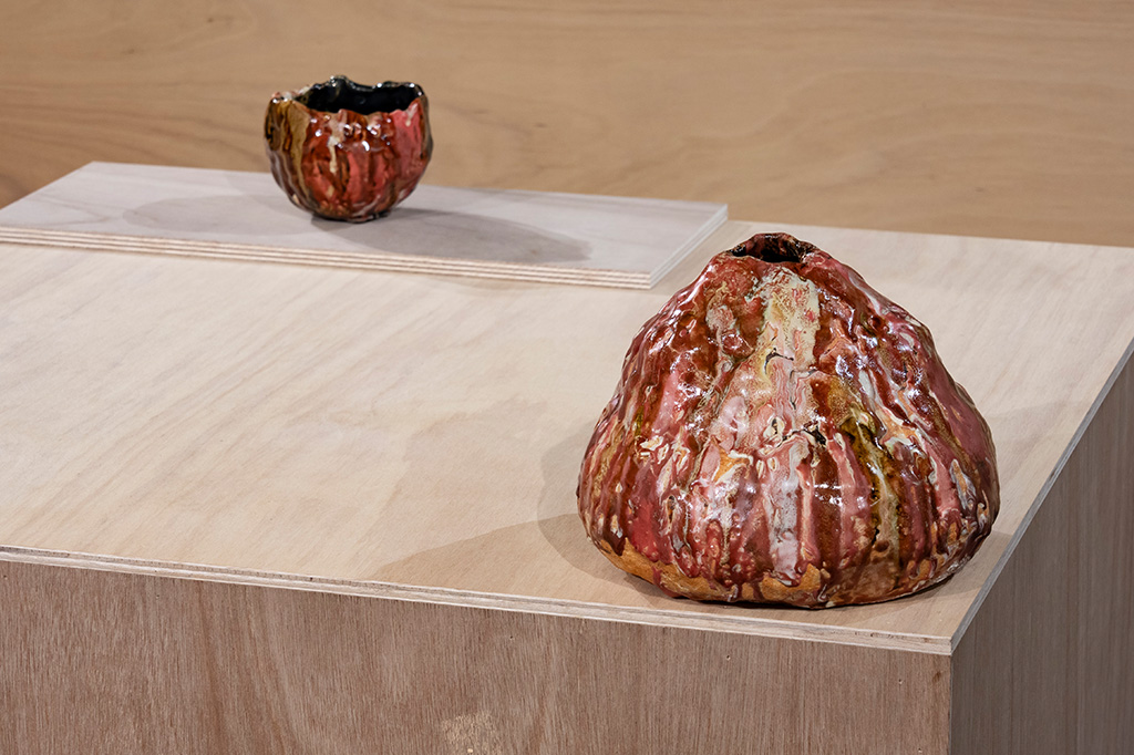 自然と人工物、そして自身の身体を行き来することをひとつの関心として、両者の距離感や関係性を扱う陶芸作品を制作している。本作は、私の身体と植物との「間」に立ち現れる感覚や気配を探るためのスタディ群である。