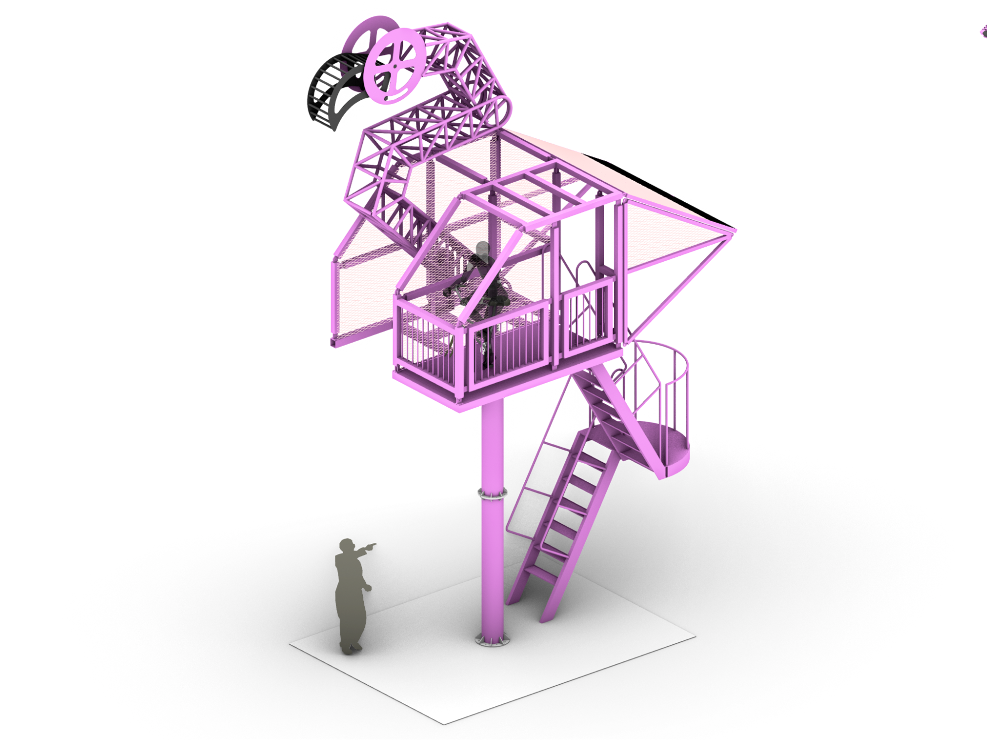 重機である“クレーン”が鳥の名前に由来することから、「もしフラミンゴという重機が存在したらどうだろう?」との連想ゲームから生まれた作品です。
