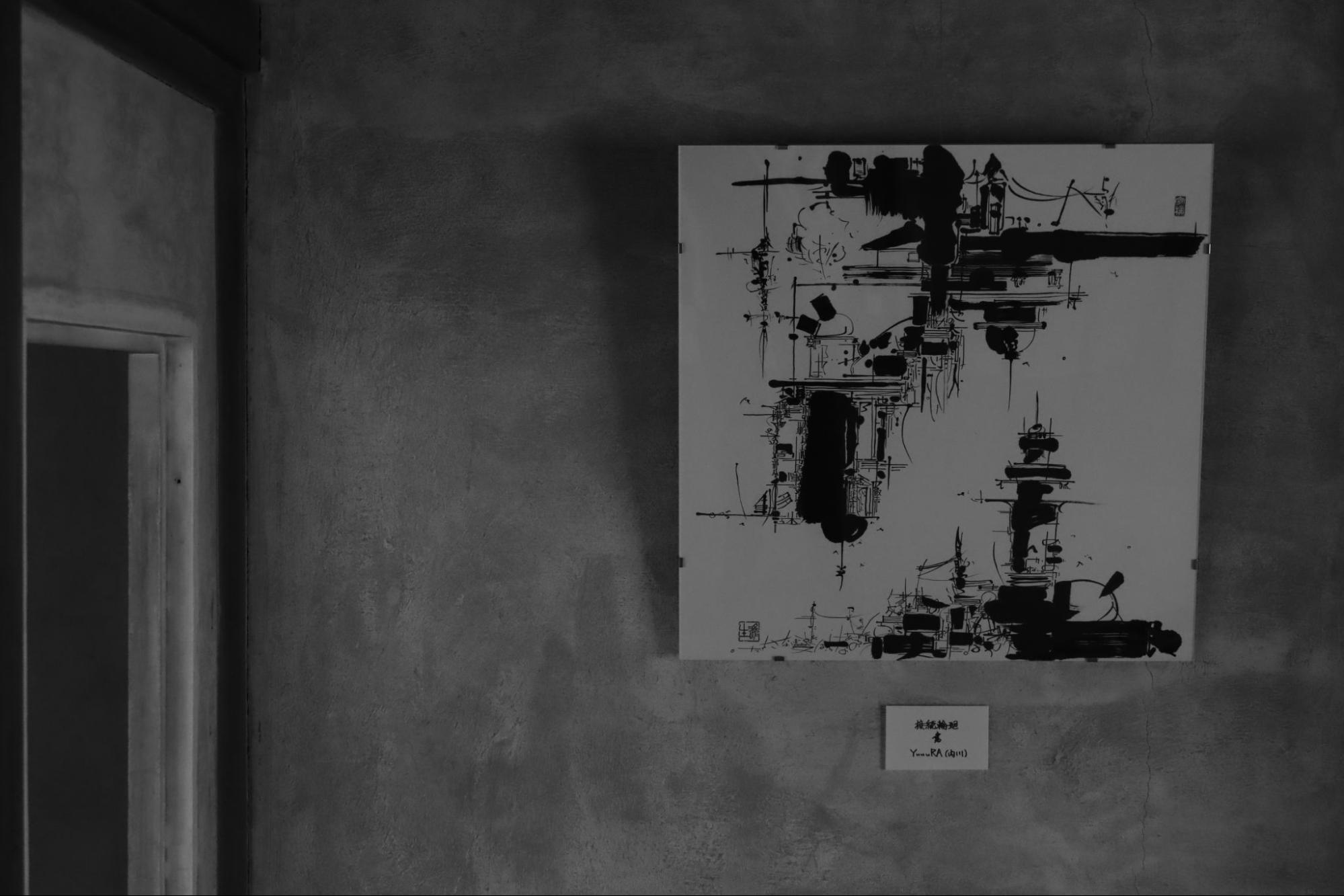 内川: YuuuRA(誘楽)という作家名で活動しております、内川雄生です。母、祖母ともに現代書道家の家系に生まれ育ち、書の学習と現代性の追求を教わり、三代目として「現代書道」を開拓しています。所謂、現代書道と呼ばれているものは戦後に発展してきたとされていますが、前衛書道含め変化に乏しくなった昨今の業界に一石を投じ、新たな潮流となるべく、「構築書」という書風を考案し制作しています。大学で専攻した建築領域から、図面と文字とを同じく「線の情報」であると捉え、それらを掛け合わせたものが「構築書」のあらましです。