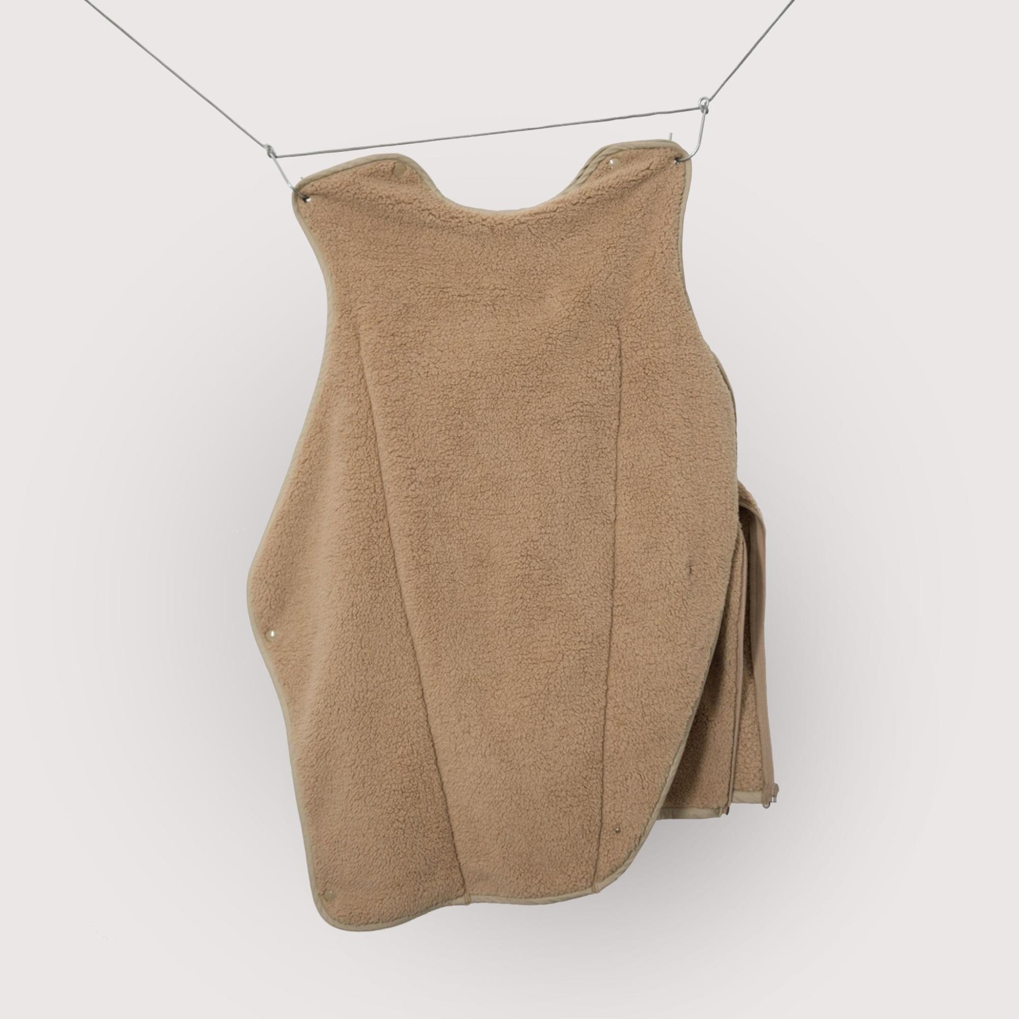 本作は、吊るされた衣服、異なる素材の傾斜、衣服と連動して上下する什器などから構成される。着用者は作品を通じて生活能力全体が着方と関係をもつこととなる。