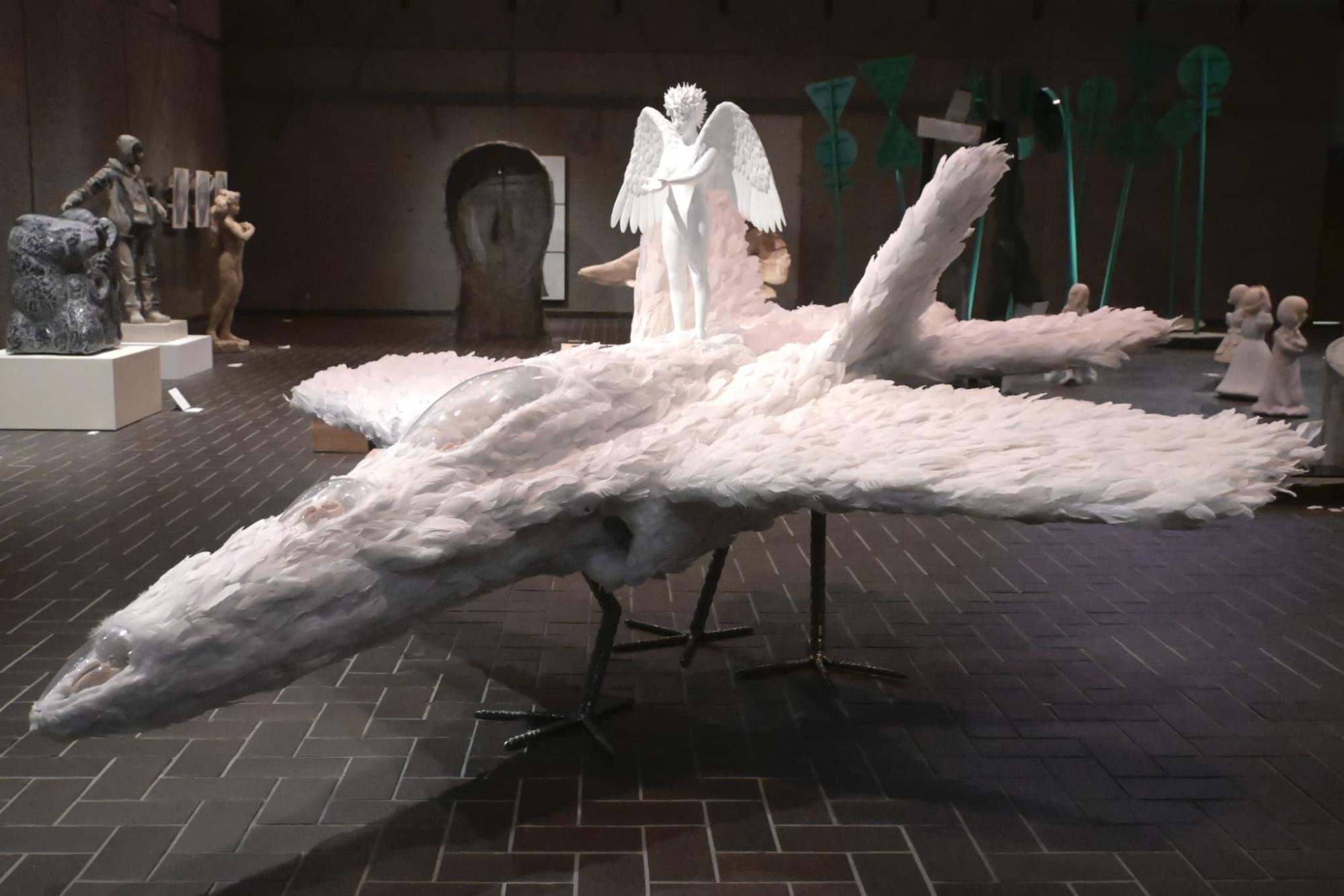 みずかみ:彫刻は製作時間がかかる分、サブミッションとして嗜好の異なるものを作りたくなるんだと思います(笑)。彫刻だけだとどこか動きづらいというか、瞬発力が衰える感じがあって……おもちゃを作ったりしてバランスを取っているのかもしれません。彫刻とそれ以外のものを組み合わせた作品も、これまでにいくつか作っていますね。彫刻作品の一部に映像を組み込んだものもありますが、ひとつの展示における幅の広さ———見飽きさせたくないという思いもありますが———を持たせたくて、彫刻作品と、映像作品を並べて展示したこともありました。