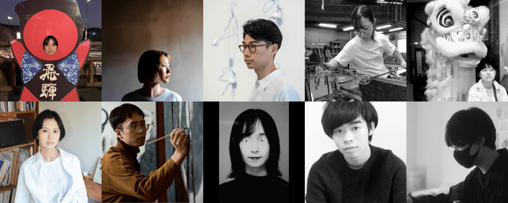 遠藤 茜(工芸)|斉藤 七海(彫刻 / 現代陶芸 )|サカイケイタ(メディアアート / 彫刻)|寺澤 季恵(彫刻 / インスタレーション )|中澤 ふくみ(絵画 / ドローイング / アニメーション)|成定 由香沙(建築)|丹羽 優太(絵画)|まちだリな(アニメーション)|村本 剛毅(メディアアート / 媒体芸術)|渡邉 泰成(彫刻/工芸 / 陶芸 )