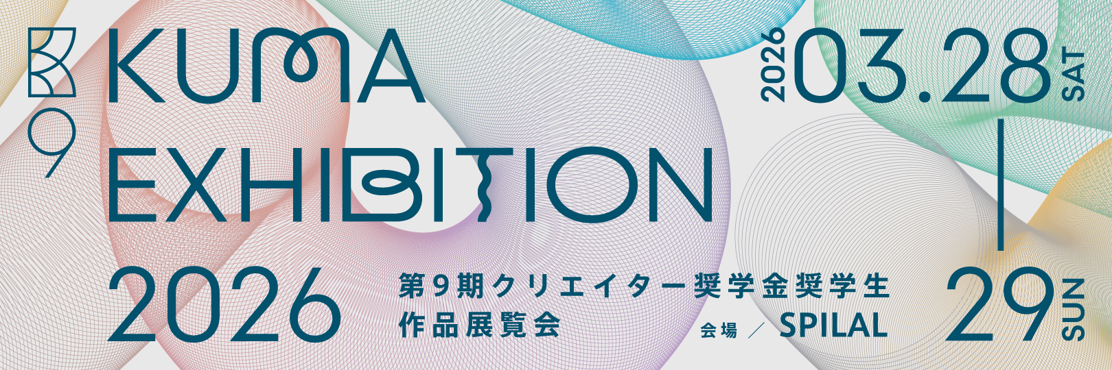 「KUMA EXHIBITION 2026」には、今年度新たに採択されたクリエイター奨学金9期生49名と、同奨学金の卒業生である「活動支援生」10名が参加し、総勢59名の若手クリエイターの作品が一堂に会します。