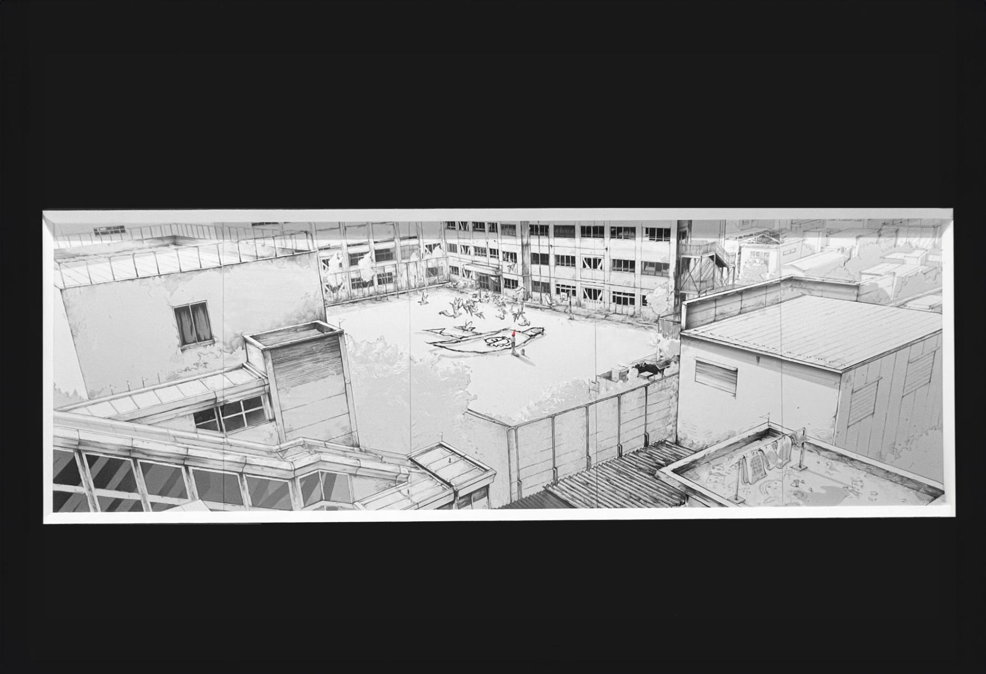 漫画における聖地巡礼のように、場所性の特質に焦点を当て、自身の経験や記憶を置き混ぜた作品を制作することが多いLiisa。本作は、外国人として日本に暮らすLiisaが神聖化して見ていた「日本人が通う小学校」がモチーフ。自身が立ち入れない場所として神格化された場所性を捉えた。