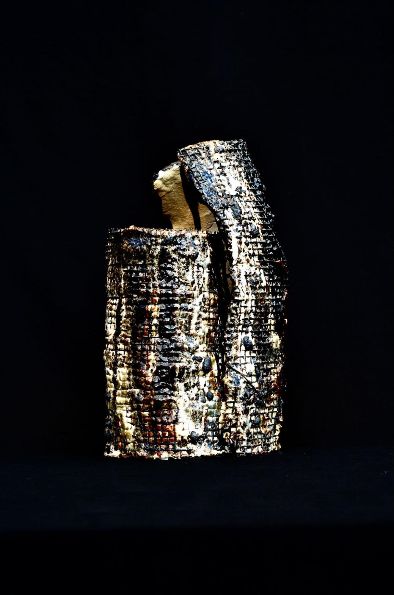 「自然と人工物の境界を曖昧に行き来する」ことをコンセプトに、陶器に金網を巻いて焼成する作品をこれまでに数多く発表してきた斉藤七海。そのインスピレーションは物理的にも時制的にも離れた英国・ケルトの世界観にはじまり、国内ではイタコ(霊媒師)の生きる土地・恐山や、悠久の時を刻みつづける大樹林の賢者を育む屋久島など、人々の信仰に根ざした土地に育まれた。本記事では、2026年3月にひかえた斉藤の初個展につながる根本的な制作思想や、個展への構想を聞いた。