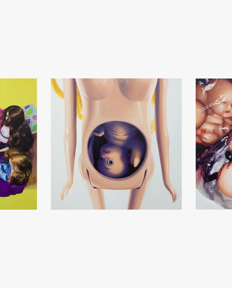 私はこれまで人形をモチーフにした絵画を制作してきた。リカちゃんやバービー人形といった象徴的な女児向け玩具をモチーフとして選ぶことで、ジェンダーやその他の役割の押し付けをテーマに「人間劇」を描く。